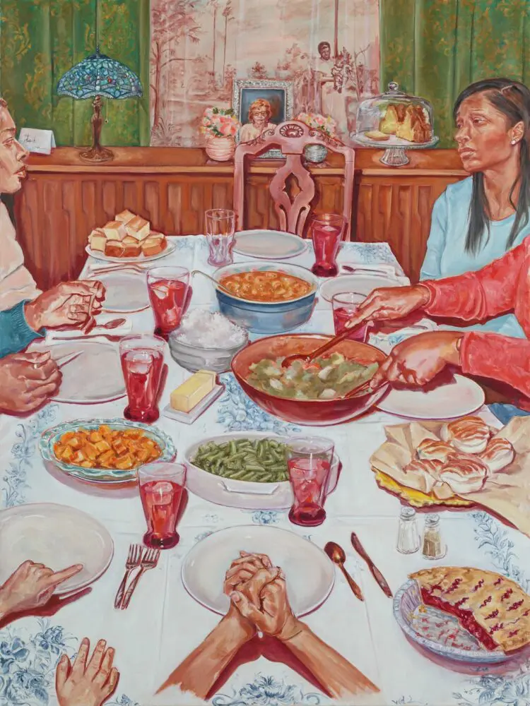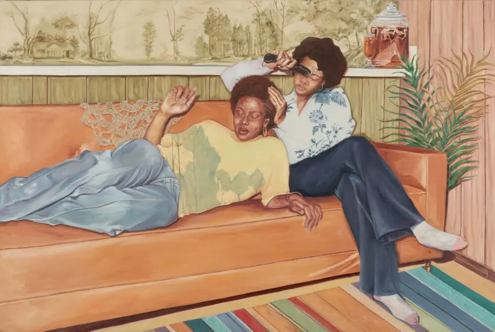 Ayana Ross is a visual artist whose work combines traditional oil painting methods, using figurative realism, with the elaborate treatment of patterns and decorative design as a visual language to evoke nostalgia, elevate her subjects, and provide greater context into her work. Often autobiographical in nature, Ross’s paintings employ layered narratives from past and present to examine social issues, such as identity, race, equity, and a general assessment of value systems, while aiming to illuminate the greater lessons that can be learned from everyday people and moments.